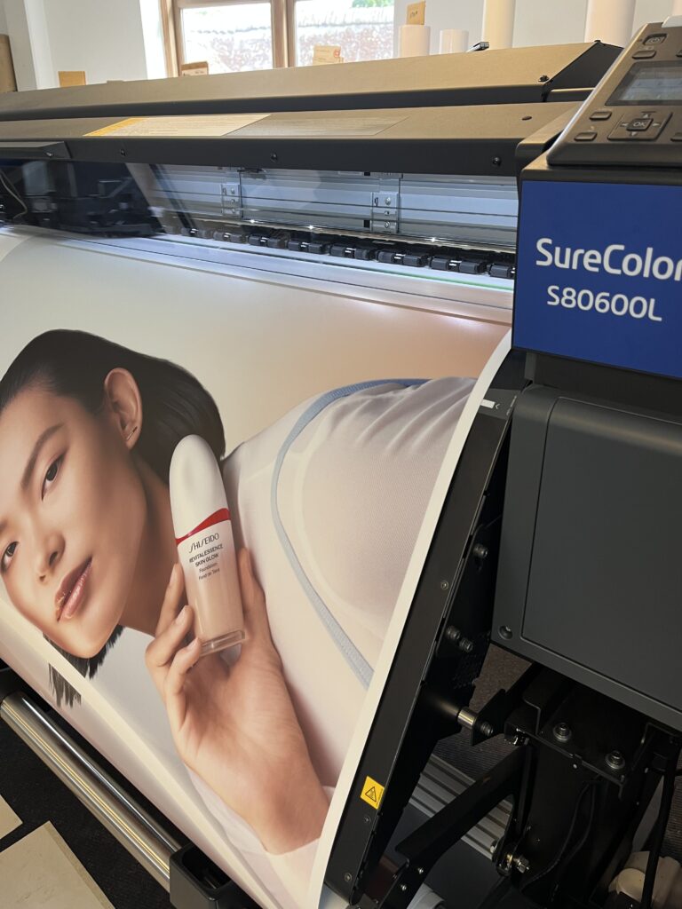 Vores printer, en Epson SureColor S80600L kan printe på en bred vifte af materialer og overflader, herunder: klar film, vinyl, lærred, tapet og fotopapir.